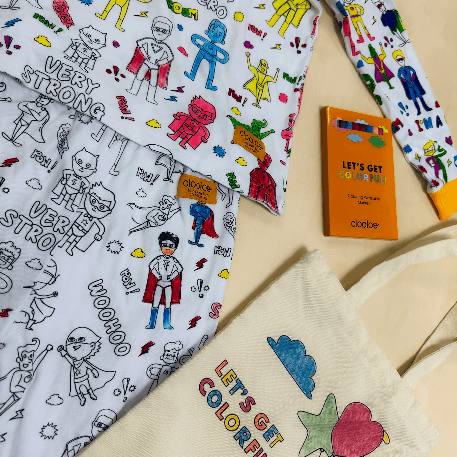 - Colorable superhero sleepwear. Reusable and eco-friendly